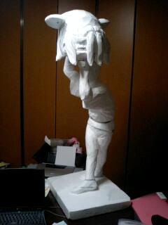 獅子彫りでなくて・・獅子振りの像を何作か発泡スチロールで習作し、さらに原寸大まで拡大し制作します。それをモデルに木彫を試みてみようかと思います。獅子振りの像はいつか作ってみたいと温めていた構想です。原木丸太から彫りこむ木彫はやり直しが利かないので一発勝負。その前に稽古をして腕を磨きます。