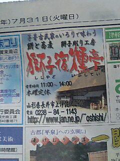 7月31日の河北新報に広告を出しました。最近顕著に県外ナンバーの車が多くなってきたのですがもっと多くの方々に獅子宿を知っていただきたいと思って広告を制作しました。