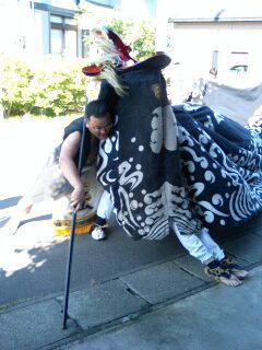 自宅が休憩場所になりました。そこでアンドリュー君初の警護掛かりを体験しました。さまになってますね!カキ氷をご馳走しました。
