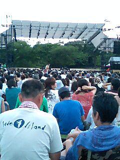 本日えくぼ獅子舞は佐渡のアースセレブレーション2007にやってきました。不思議な感じですね〜ジェットフェリーで一時間で佐渡に着きますが、我々山彦にとって船で海を渡るなんて非日常的なんでしょう。只今夜の十時半、鼓童のコンサートが終わりホテルに戻って皆さんお疲れで眠たい顔をしております。明日はいよいよ獅子舞披露の本番です。会場の途中に獅子舞を行う木崎神社の会場を見てきました。立派な神社で雰囲気も申し分ない会場でした。明日はお昼から25分時間をいただき獅子舞披露です。