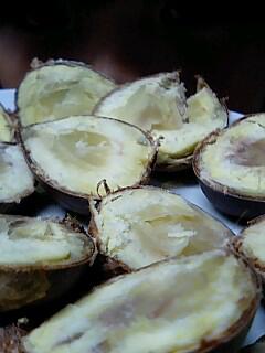 三女とアツアツの庭栗をいただきました。味ははっきり言って大味でしたぁ〜