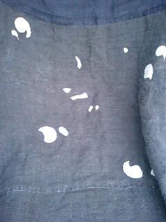 昭和三十年代につくられた西高玉の獅子幕の波模様に妙な模様を見つけました。水玉の中に棒の様なものがあるのです!何か隠されたメッセージなのでしょうか?染め職人のサイン?