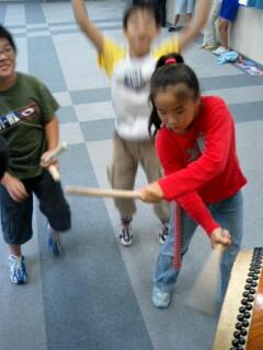 長井小獅子舞クラブでした。太鼓打ちの彼女は夏休み前まではまだ自信ない叩き方でしたが、かなり上達していました。繰り返しの稽古の積み重ねで自信がついたようです。どこかのお祭りで武者修行したのかもしれません。