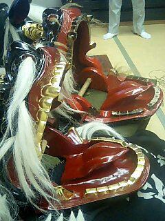 先日西高玉の公民館で先月納入した獅子の調整を行いました。口の開く角度が足りないという事で手直しをする事になりました。何回も見聞したのですが誰も気にとめなかったのは不思議ですね〜と談笑しました。