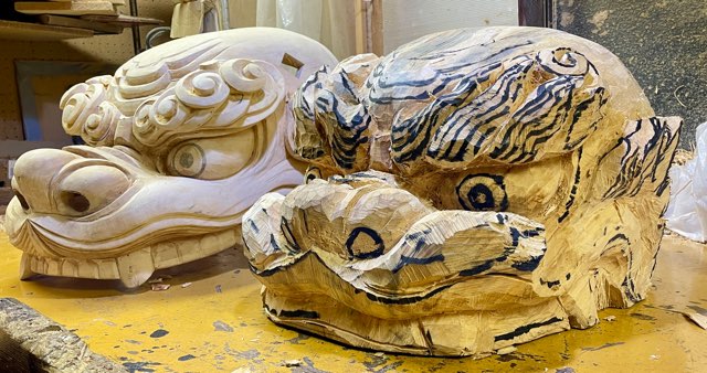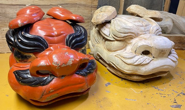 づけたいと必死に制作させて頂いたのだ。手本の獅子は神社の神殿や拝殿の彫刻に秀でた彫師で見れば見るほど