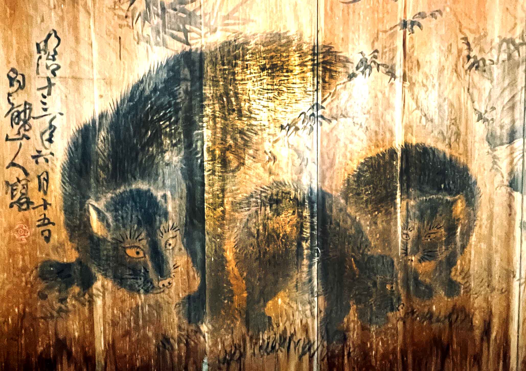 絵師で宝印様であれば大胆に拝殿の壁に墨絵を残したと考えてもおかしく無い。この絵図については