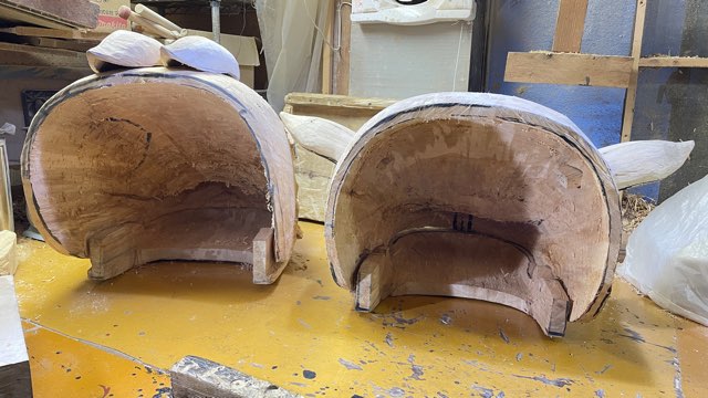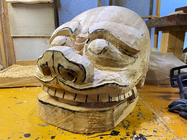 りした。24日に最初の獅子を荒彫りし、年明け13日に顎と耳を作り合わせた。