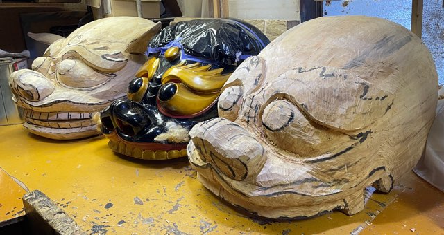大型の獅子頭を三頭連続して制作するには、体力や気力の勢いが必要だ。制作していると