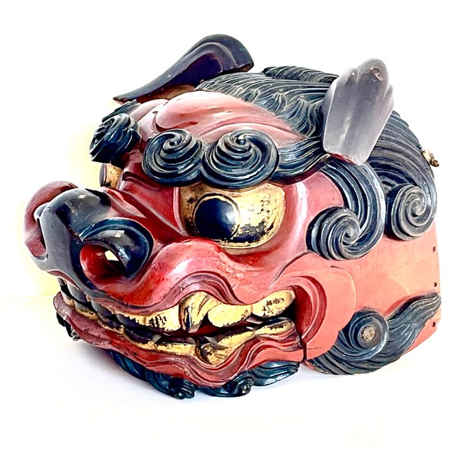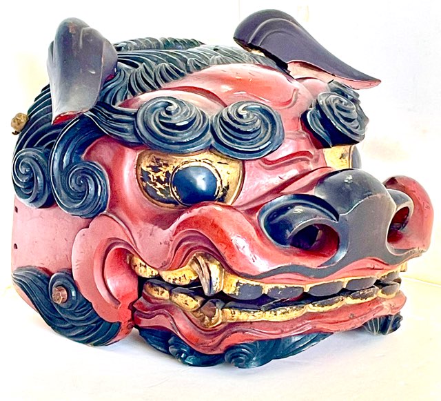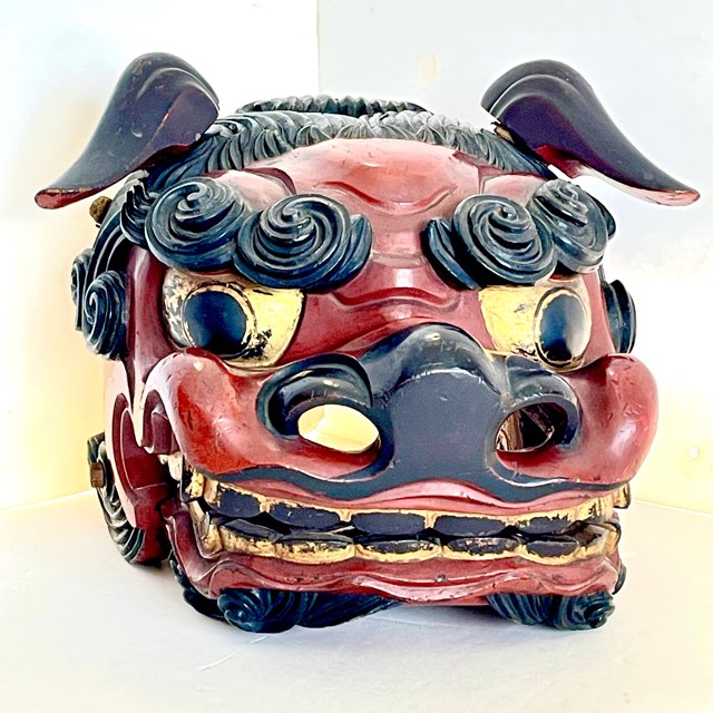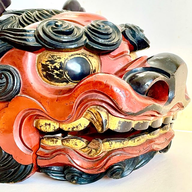 相当技術的に高度な彫りのオーラを発する獅子頭を入手した。