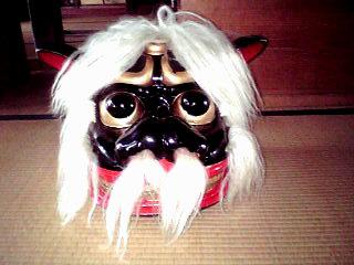 このお獅子が地元金子さんが制作した獅子頭。上を見てます。