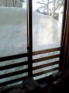 屋根から落下した雪が積もって壁になっています。なかなか減らないんだなー。