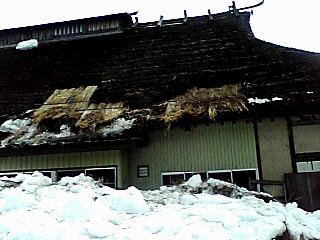 まだ茅が凍っていて修復するには季節が早すぎるのでとりあえず茅を並べて雨をしのげるようにしてもらいました。