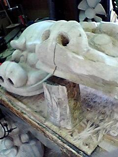 冬に三頭一緒に彫った内の一つが割れてしまいました。後の二つはなんとか無事でした。同じ柳でも部分によってこうなるんですね。