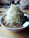 店員さんが運んできたラーメンを見て驚きました。葱味噌ラーメンを注文したはずです。カキ氷みたいなのは葱。一本分はあるかもしれません。でもさらしているのでしょうね、葱特有のからさはありません。うーーむ過ぎたるは及ばざるが如し....かな?