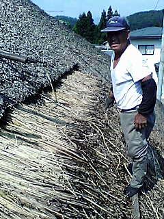 かやぶきの屋根の修復作業もだいぶ進みました。穴も塞がり一安心です。