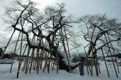 2月8日(水)暖かな一日でした。久保桜も重い雪を新しくなった支柱に支えられ春を待っていました。