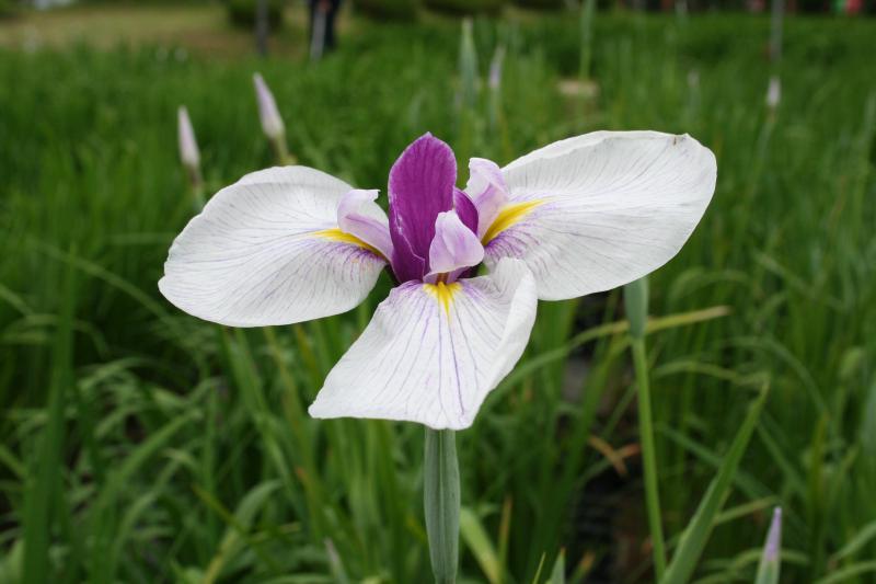 長井古種「萩小町(はぎこまち)」が開花していました。白い近い花弁に濃紅紫の細い筋が入っています。