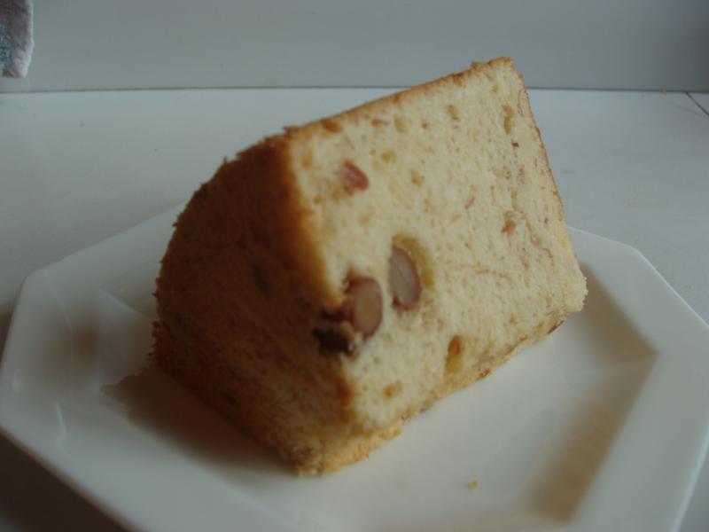 シフォンケーキの中に紅大豆の潰したのと粒のままのを、入れて焼き上げました。