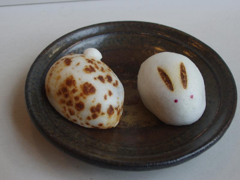 十印では十五夜にちなんで上用饅頭で「うさぎ」と「さといも」のお菓子を作ってみました。
