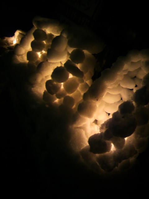 らぁじゃ前の、スタッフ自作の雪明りです。