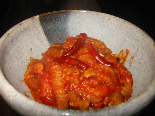 「豚もつのチリトマト煮」