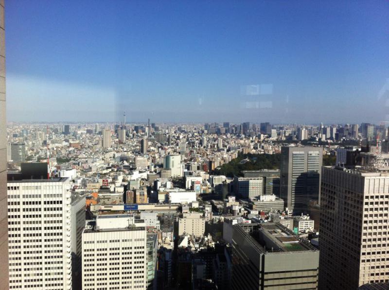 東京都庁の展望室から都内を一望、左手奥が東京スカイツリーです。