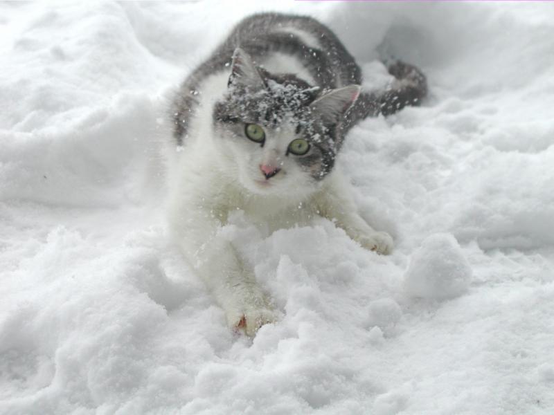 寒い中でもいっしょにそとでお仕事?をする元気いっぱいの子猫です。