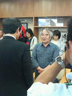 写真左の黒っぽいスーツで背中が写っているのは、安部市長だず。