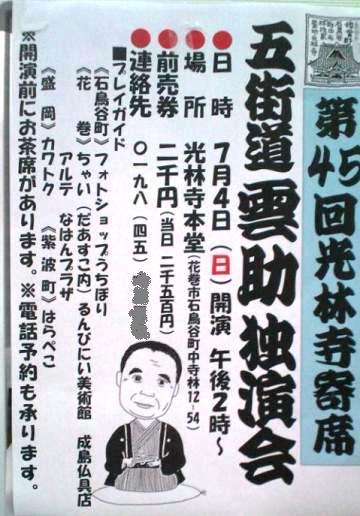 来る7月4日(日)、午後2時から、石鳥谷にある光林寺で