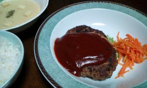 で、作ったのが、コーンクリームスープと、ハンバーグです!