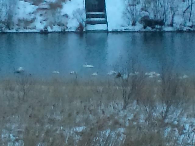 白鳥たちは、流れの穏やかなところに集まっていました。