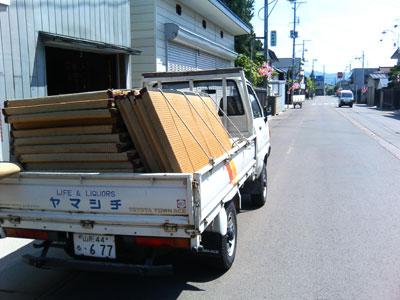 昨日トラックに積み込んだ畳20枚を清掃事業所に捨てにいきます。