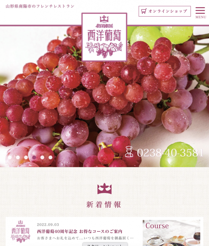 欧風レストラン 西洋葡萄http://seiyobudo.jp/おいしいぶどうが実る里山形県南陽市の欧風レストラン山形県置賜地方の大地の恵みや、米沢牛、旬の味覚を生かした季節感あふれる料理をご提供いたします。ふるさと納税や、大手通販などでご好評頂いている商品を中心にオンラインショップでの販売もスタートしました。老舗レストランの味をご家庭でもどうぞご堪能ください。
