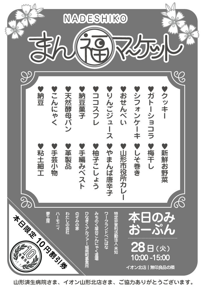 イオン店内で手配りするモノクロA5サイズの小さなフライヤーです。