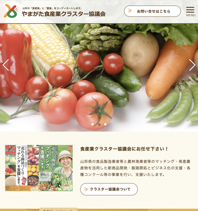 やまがた食産業クラスター協議会https://y-cluster.jp/山形の「食産業」と「農業」をコーディネートしています。やまがた食産業クラスター協議会は、山形県の食品製造業者等と農林漁業者等のマッチング、県産農産物を活用した新商品開発、販路開拓とビジネス化の支援、各種コンクール等の事業を行い、支援いたします。