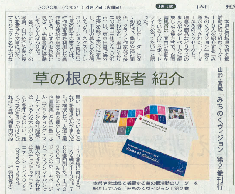 ▼みちのくヴィジョン第二巻_山形新聞にて記事掲載