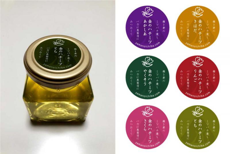 ■商品ブランドパッケージ制作■商品ブランド食品表示制作『金のはちみつ』 働き者の ミツバチ愛し バカに真面目に みつおくり