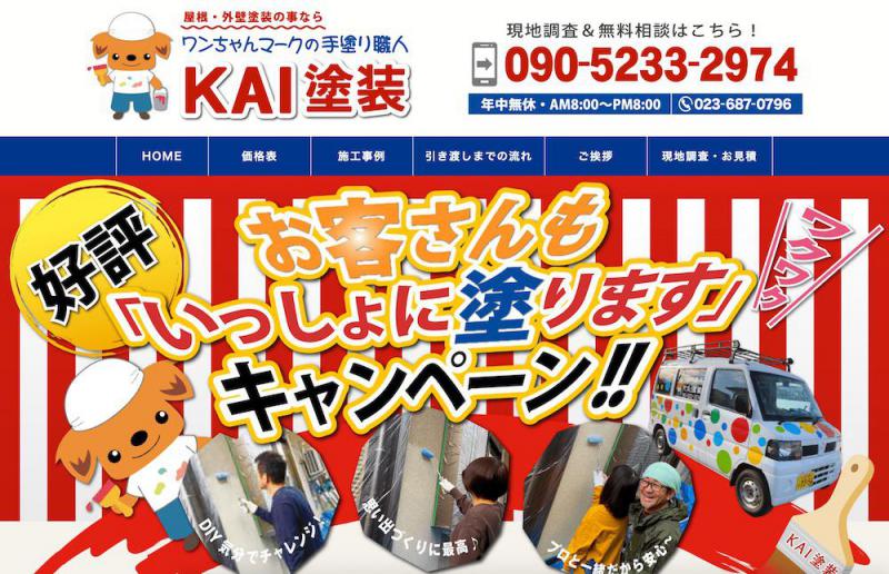 山形市の屋根塗装・外壁塗装の事ならKAI塗装https://kaitosou.jp外壁塗装・屋根塗装・雨樋交換など塗装に限らずお困り事、なんでも大丈夫です!山形市のリフォーム補助金や、雨樋の修理交換での火災保険活用についても対応しております。どうぞお気軽にご相談ください。