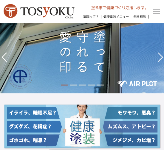 山形市の健康塗装店、TOSyOKUです。「健康塗装リフォーム」&「健康塗布リフォーム」で家族や社員などの健康を守ります。▼HP(ホームページ制作)