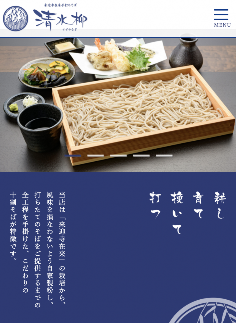 清水柳(すずやなぎ)は、大石田町は「来迎寺在来」の栽培から風味を損なわないよう自家製粉し打ちたてのそばをご提供するまでの全工程を手掛けた、こだわりの十割そばが特徴です。