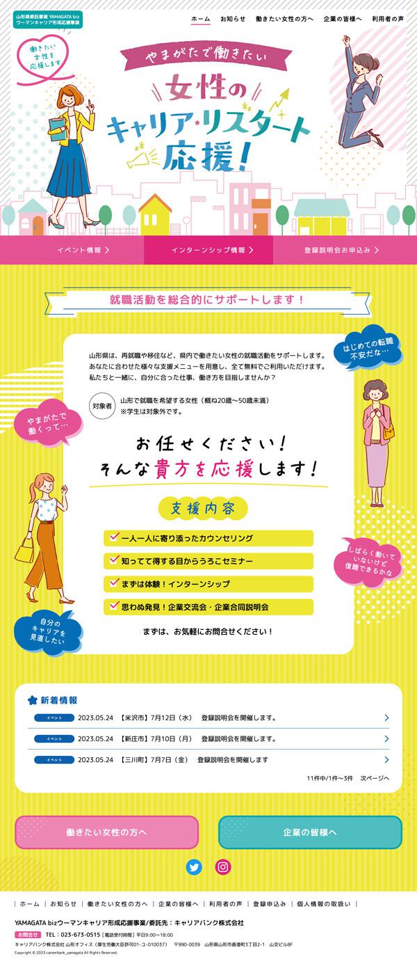 キャリアバンク株式会社YAMAGATA bizウーマンキャリア形成応援事業やまがたで働きたい女性のキャリア・リスタート応援サイト▼HP(ホームページ制作)