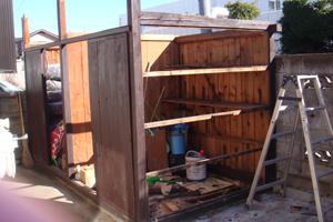 そして、壁の1面と屋根を解体しました。他の3面は再利用します。