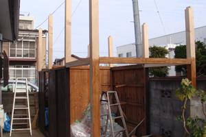 新しく基礎を作った部分に柱を立て、塗装を行いました。