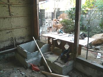 ・勝手口ドアや、サッシを入れ替えるつごうもあり、壁も含めて撤去しました。