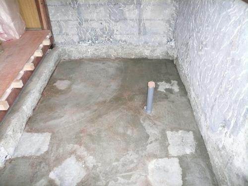 システムバスの足が設置する場所にコンクリートの平板を敷き、その周りはコンクリートを流し込みます。