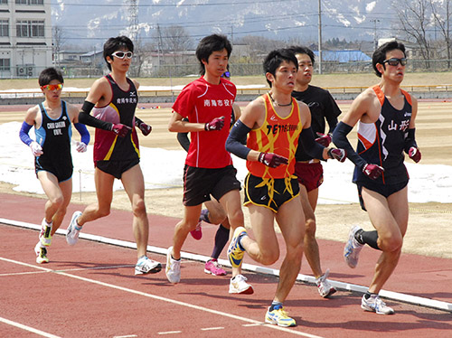 【南陽・東置賜】13、14の両日、米沢市営陸上競技場で合宿。初日は5000メートルのタイムトライアルを行い、15分前半までに7人が入った。夜のミーティングでは選手が意気込みを語り意思統一。2日目は1万2000メートルのビルドアップ走で、本番を意識して1キロ3分10秒までペースを上げた。大野紘崇(南陽市役所)三浦隆稔(同)らが引っ張った。鈴木輝生監督は「選手層は昨年以上に厚い」と手応えを口にした。
