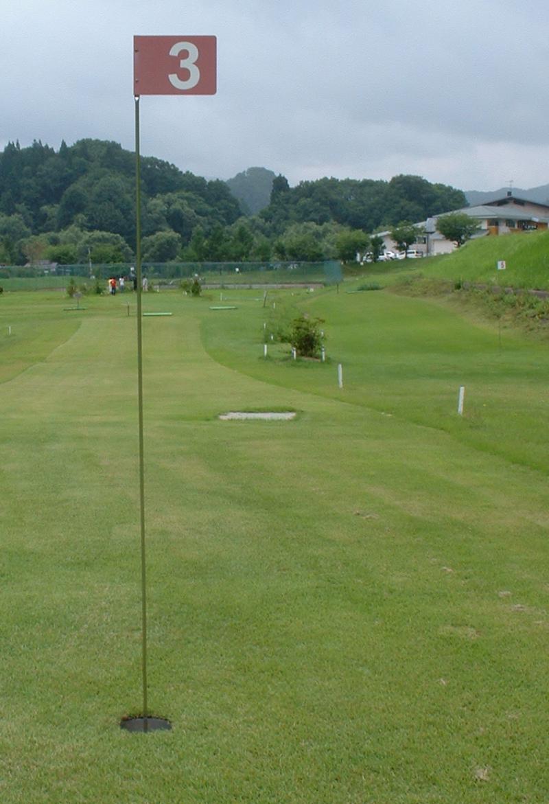 右奥の建物は白川荘です。パ−クゴルフの申込は白川荘フロントで。