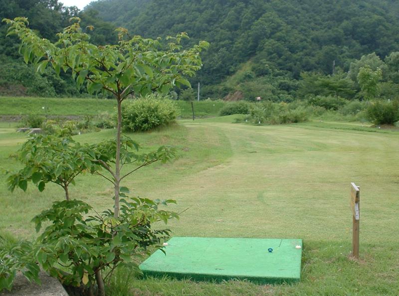 このコ−スは右の平坦地を左ドックレットに回りこむか、山越えを狙うかどちらかですが、ほとんどのプレ−ヤ−は山越えします。ピンに向かってボ−ルを浮かしぎみに飛ばしましょう、ボ−ルが飛びすぎると奥のOBに飛び込みます。
