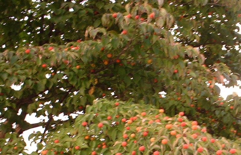 これもそのひとコマです。「やまぼうし」清楚な花で庭木としても人気があります。この様に結実すると壮観です。