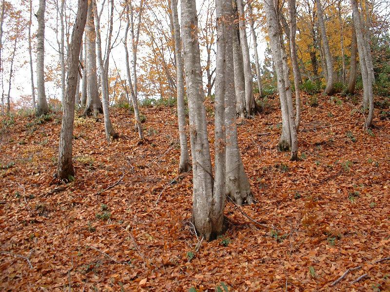 ▼11月15日 雨後晴れ 落ち葉に埋もれるブナ林